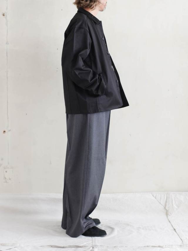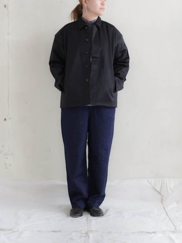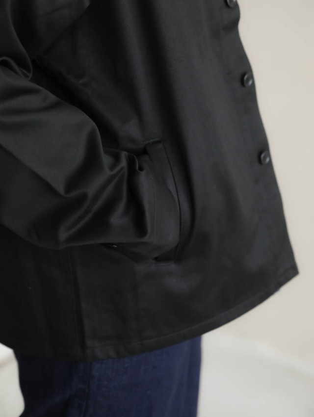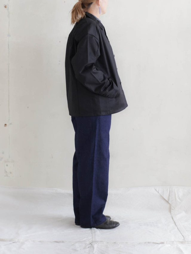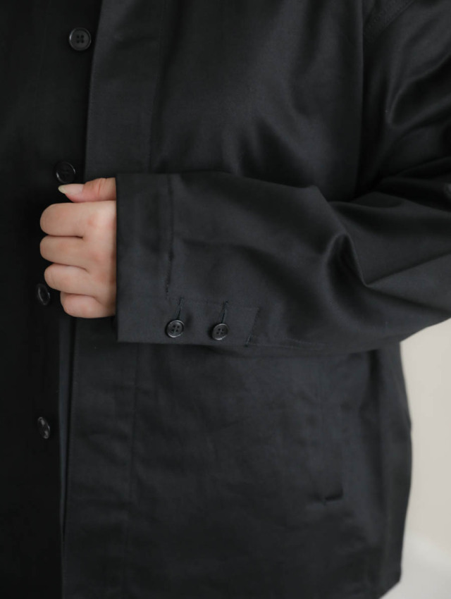 パッと見た時にはワークジャケットのような印象ですが、無駄を削ぎ落としたデザインとチノの風合いが上品なのでドレスシャツやトラウザーとのスタイリングを楽しみたいですね。