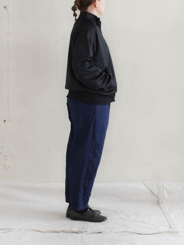 ゆとりのある着心地で楽に羽織ることができ、ラグランスリーブで着る人の体型に馴染みます。生地の落ち感によるドレープも美しいきれいなシルエットです。