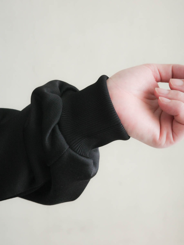 サラッと肌触りがよく、滑らかな質感のポリエステルジャージー。裏側はコットンが出るように編まれています。体に馴染む気持ちの良い着心地と、柔らかな光沢を持つ品の良い見た目が魅力的です。