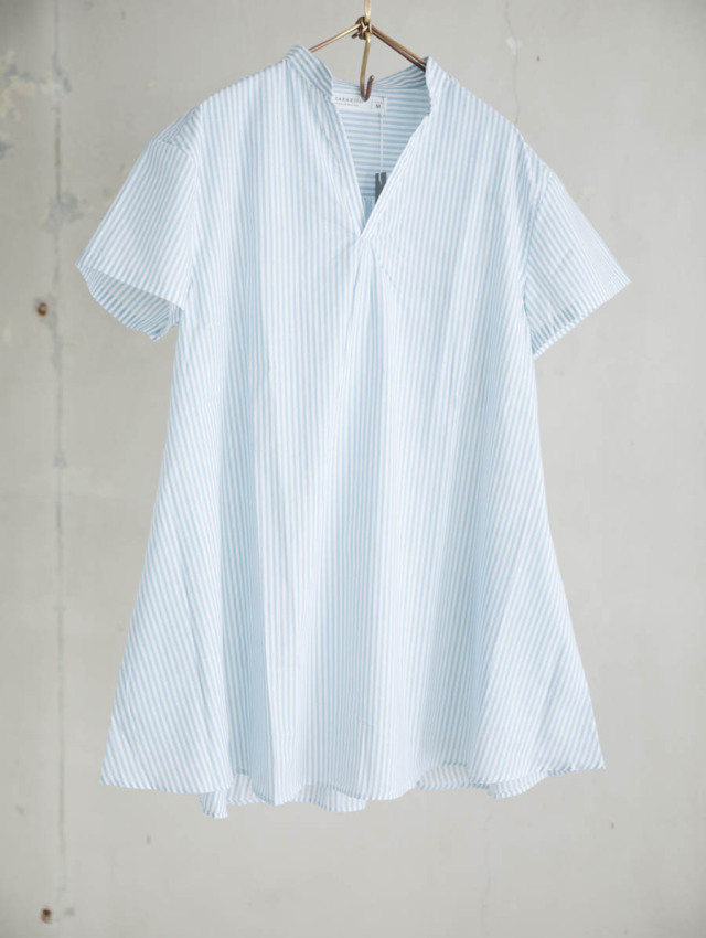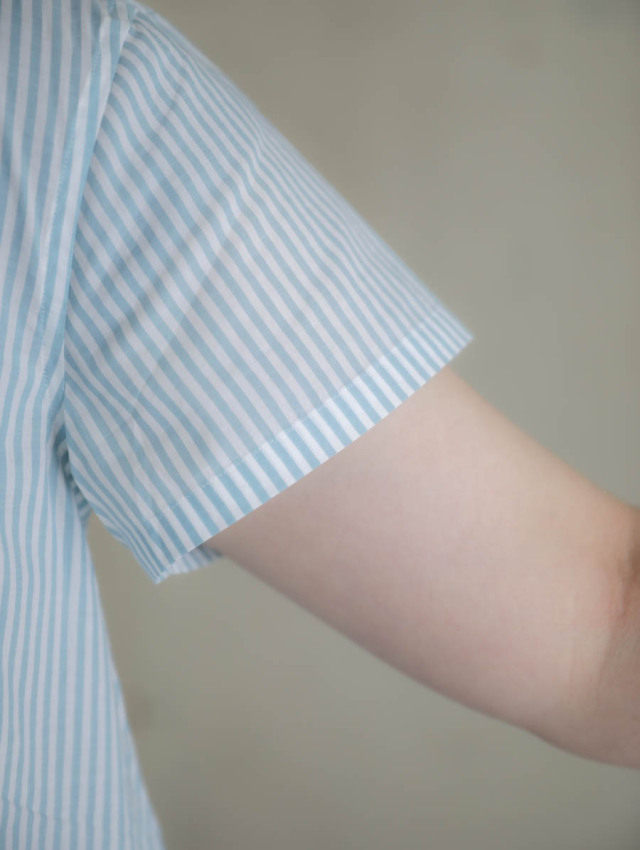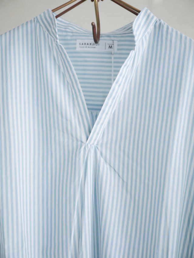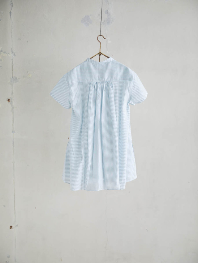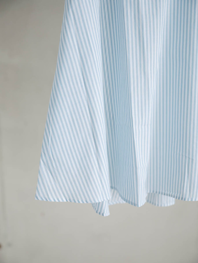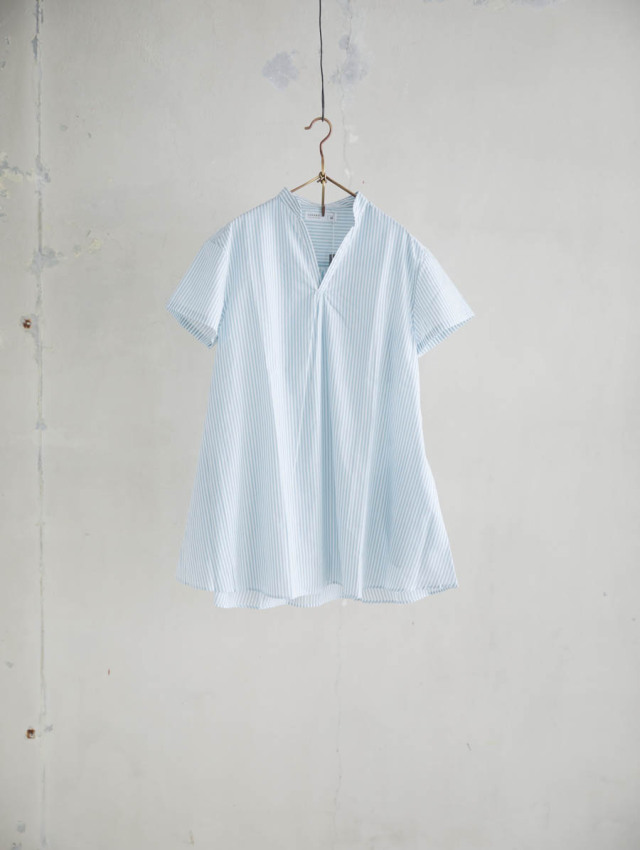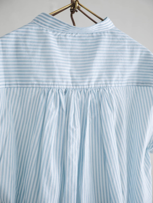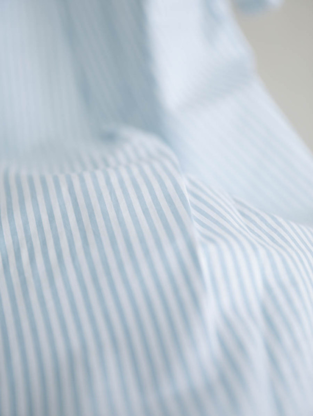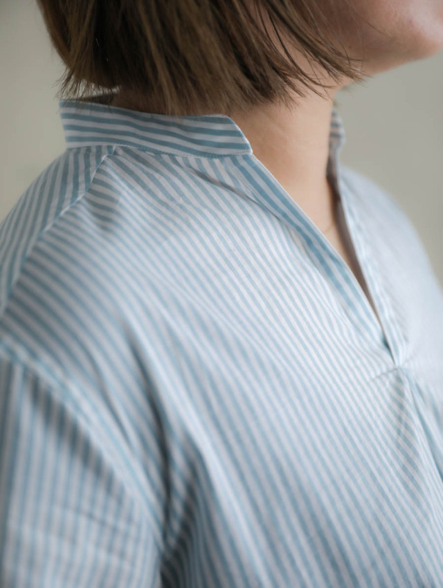 細番手の糸を使用したふんわり軽やかなコットンストライプ。柔らかな肌触りで着心地良く、デイリーにお使いいただけます。