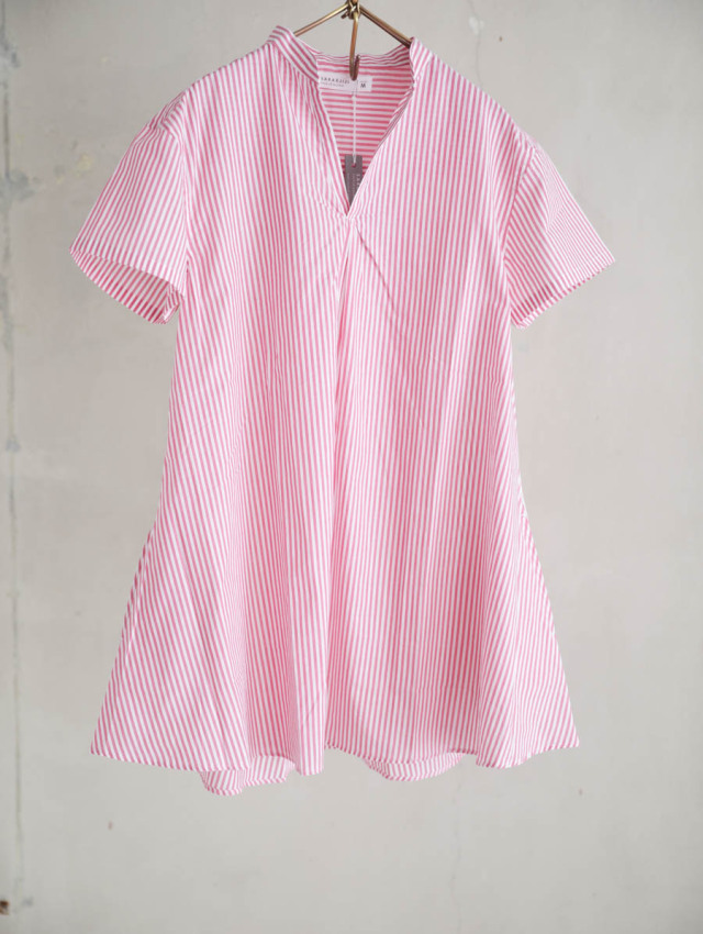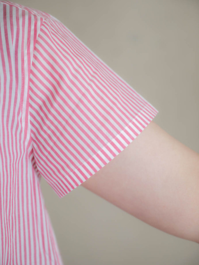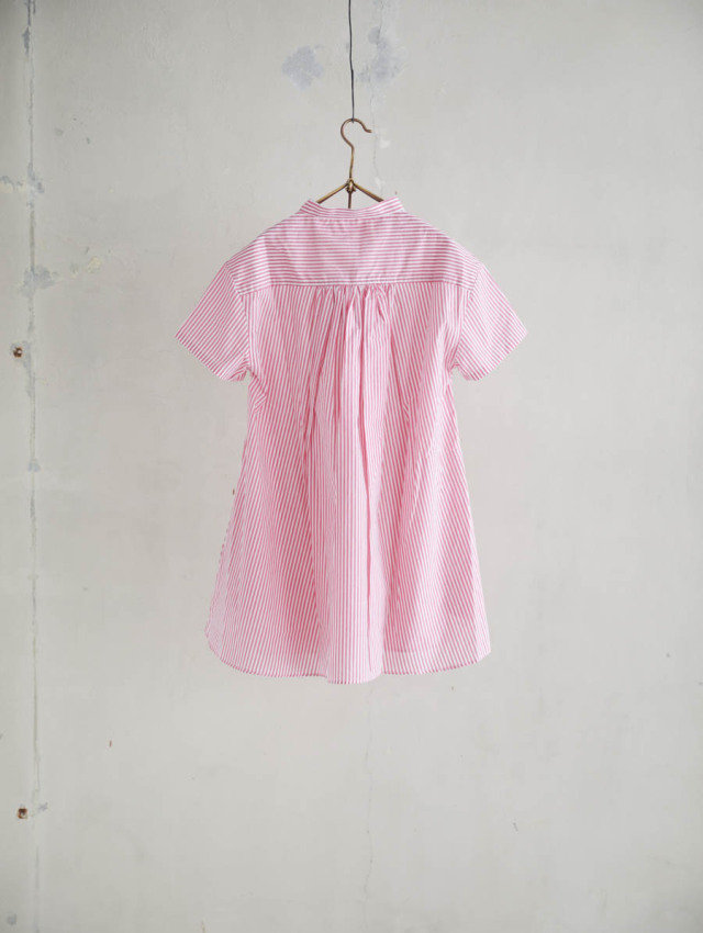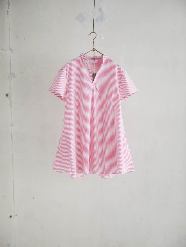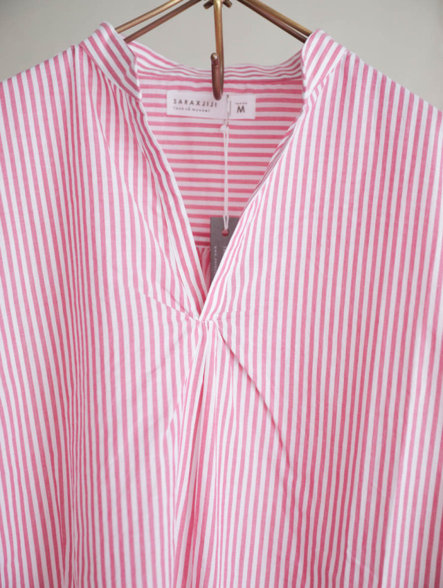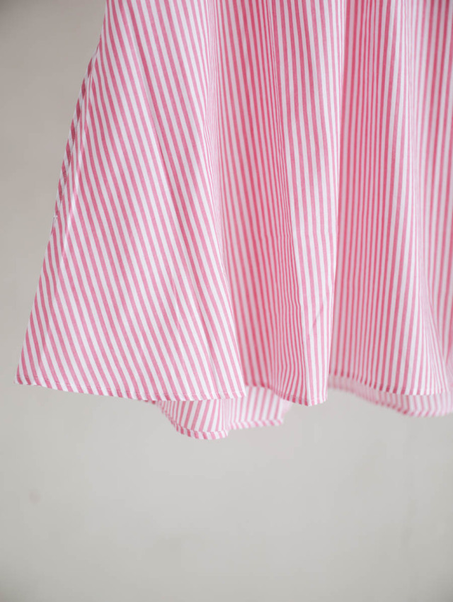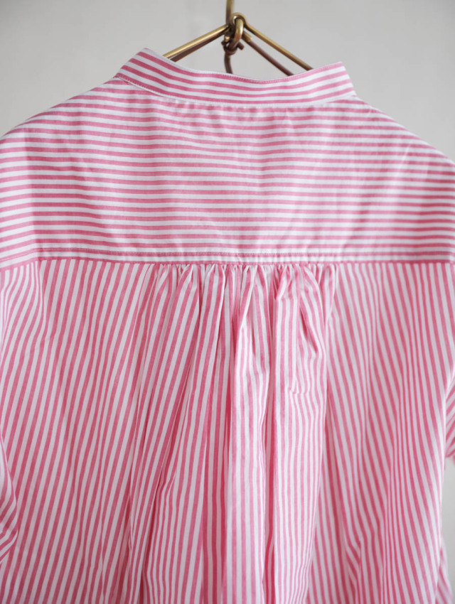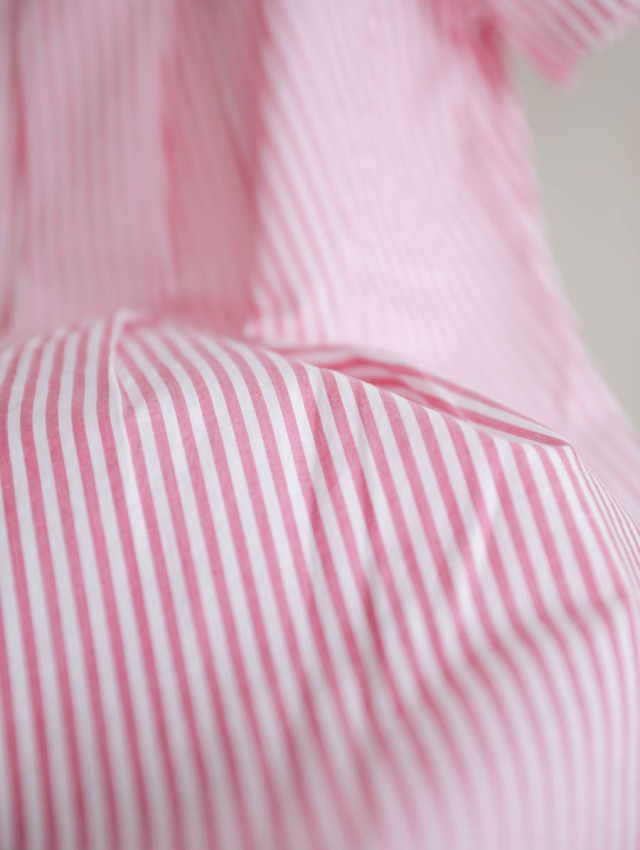 細番手の糸を使用したふんわり軽やかなコットンストライプ。柔らかな肌触りで着心地良く、デイリーにお使いいただけます。