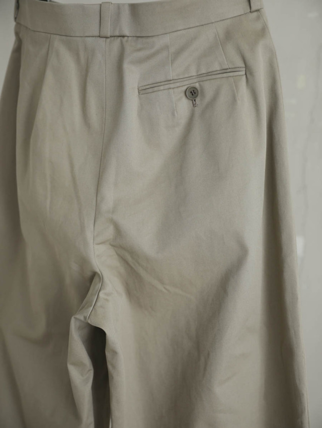 モダンなシルエットにヴィンテージの要素を足した、美しいシルエットのチノスラックスです。
