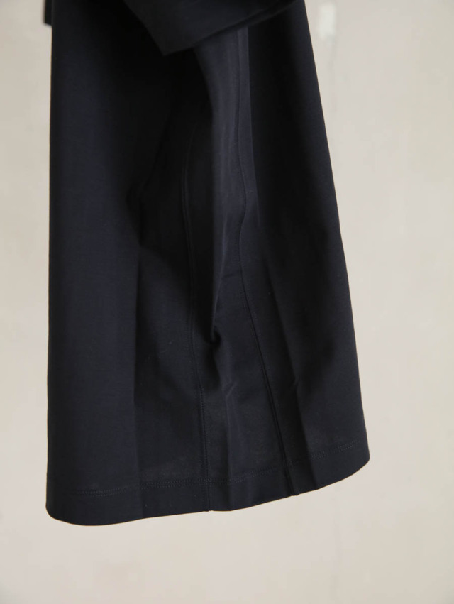 広い身幅、肩幅で、和服のような直線的なライン。着る人の体型に馴染み、その人に応じたドレープの表情を見せてくれます。