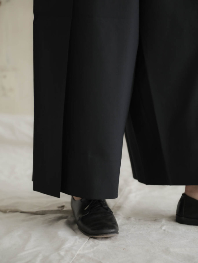粋な装いを楽しめる、袴シルエットのイージーパンツ。滑らかな落ち感をもつウールが上質なシルエットを作ります。