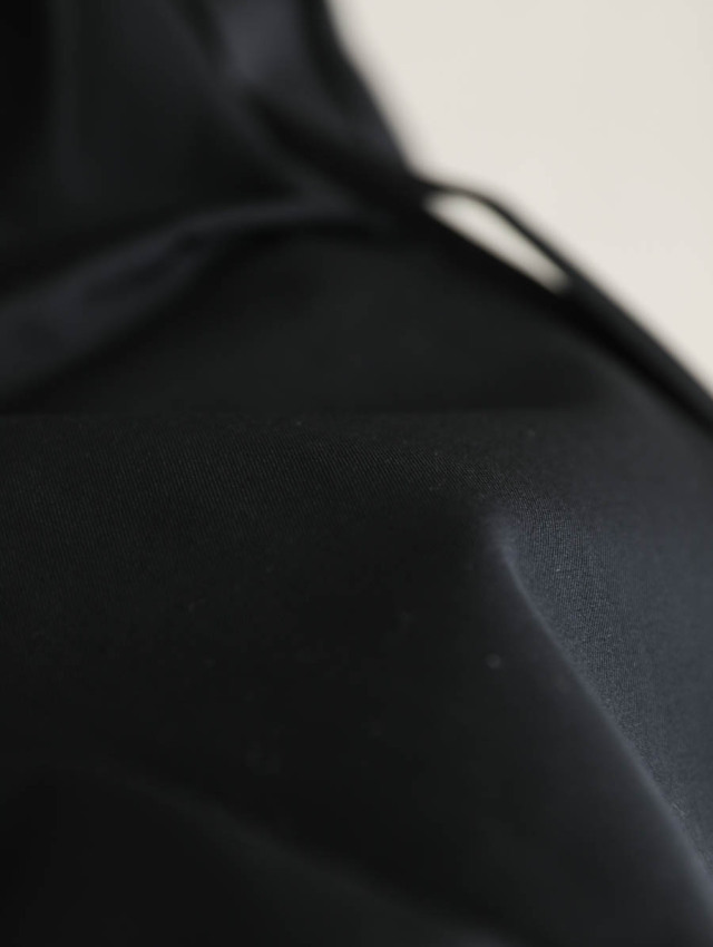 しなやかで上質な高密度ウールギャバジン。品の良い光沢を持ち、肌触りは滑らか。上品な見え方で心地よくご着用いただけます。