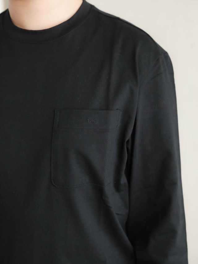 袖口はリブ、左胸ポケットにはさり気なく“THE”の刺繍が入っています。