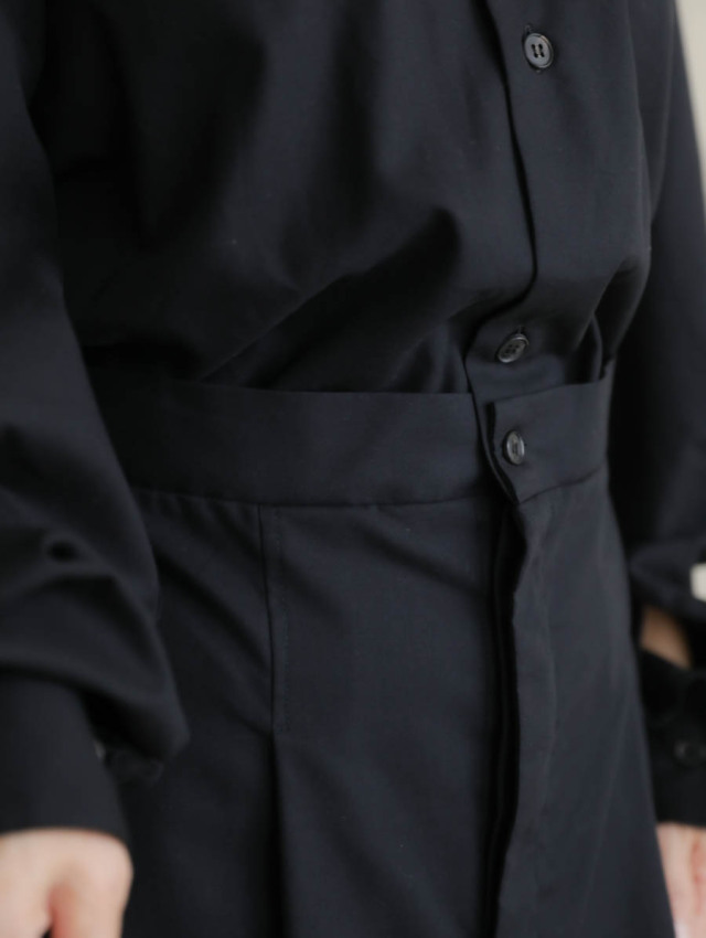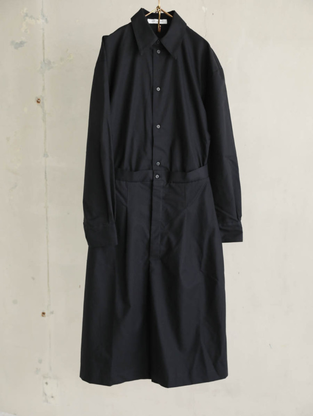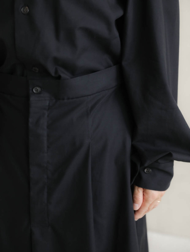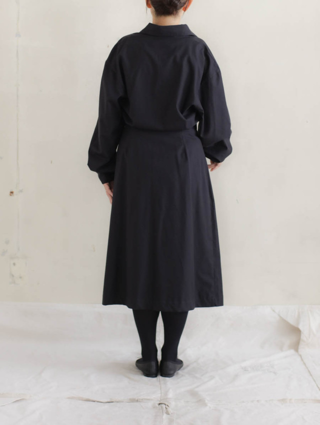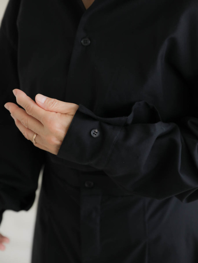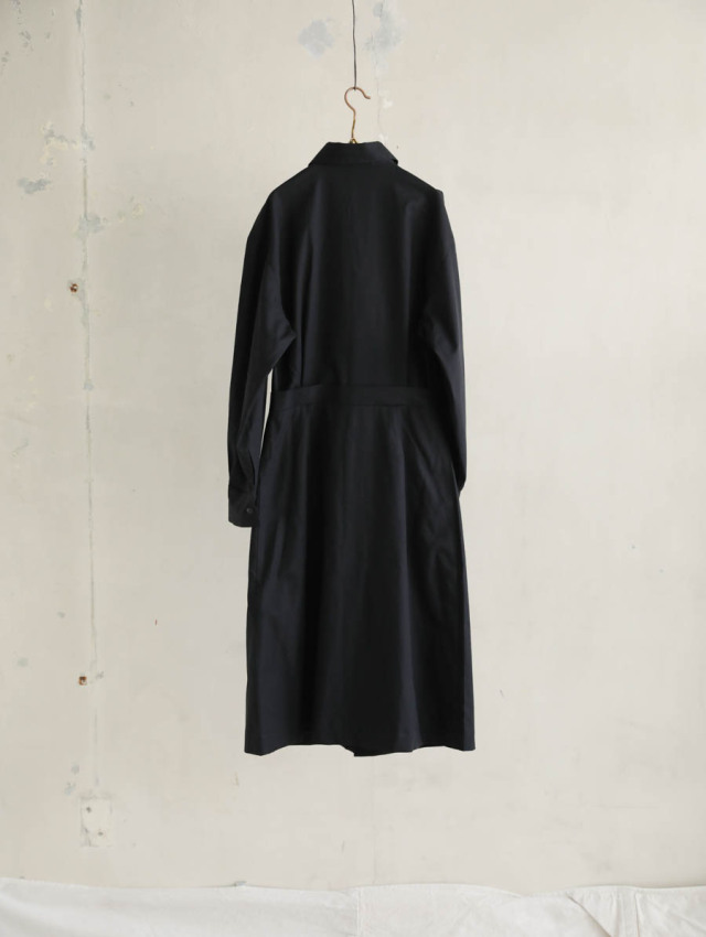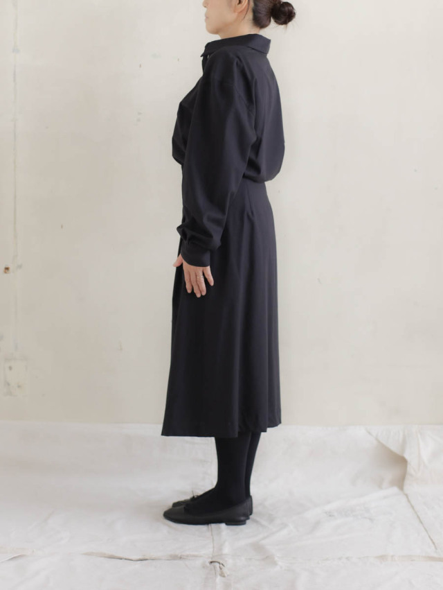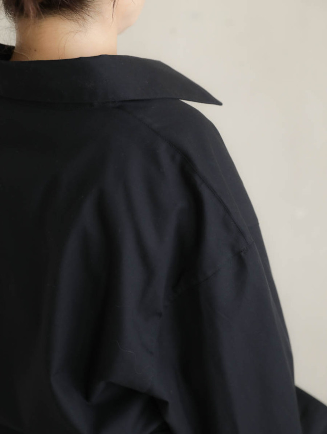 オーガニックコットンツイルドレープシャツドレス ブラック