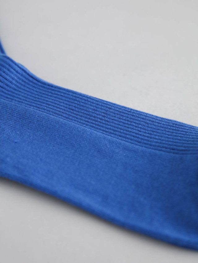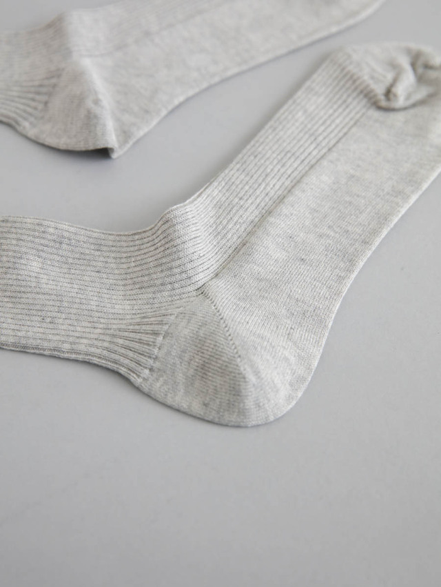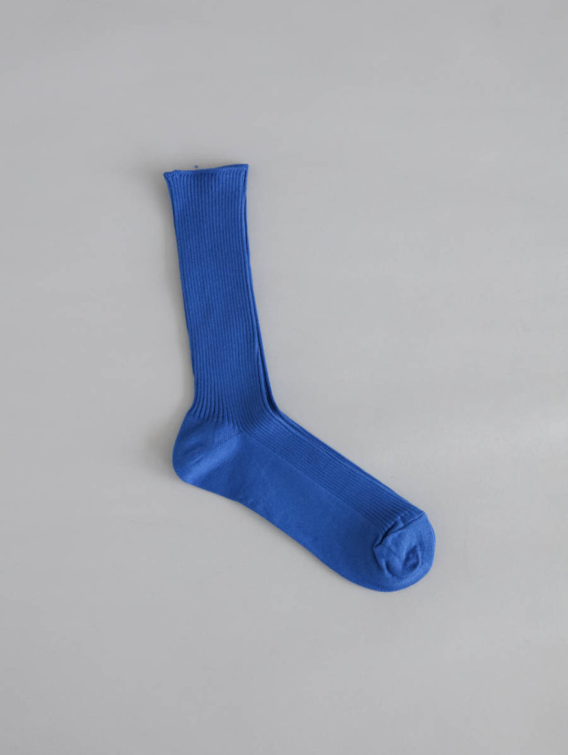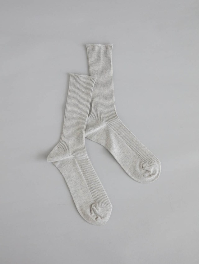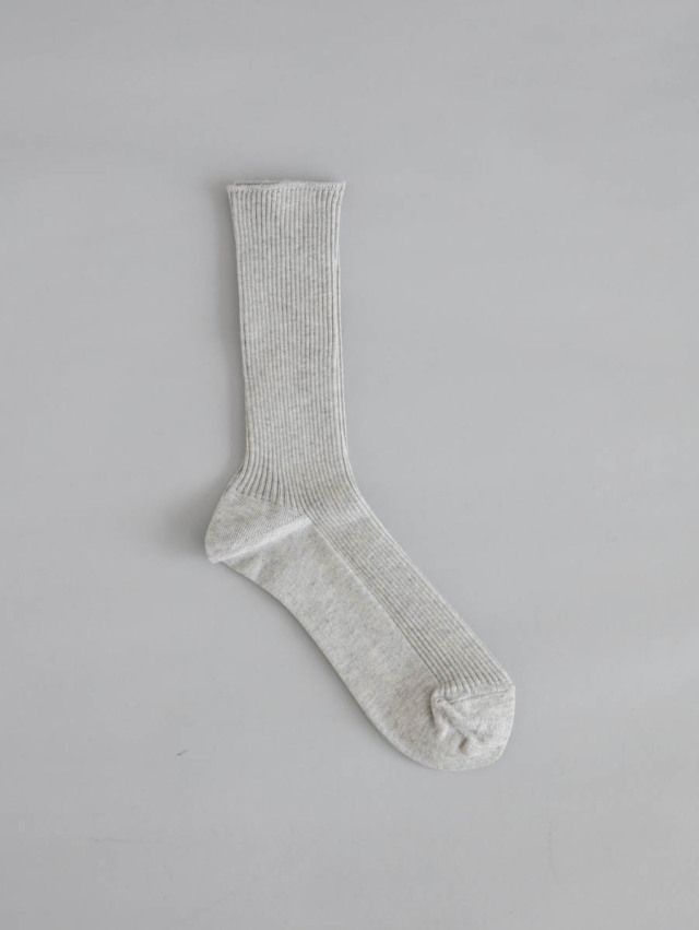 品の良い光沢と肌触りの良さが特徴のエジプト超長綿を使用。ふんわりとやわらかく、きめ細やかな編地のリブソックスです。春先から秋口まで着こなしに使いやすく、薄手なので革靴にも合わせやすいです。