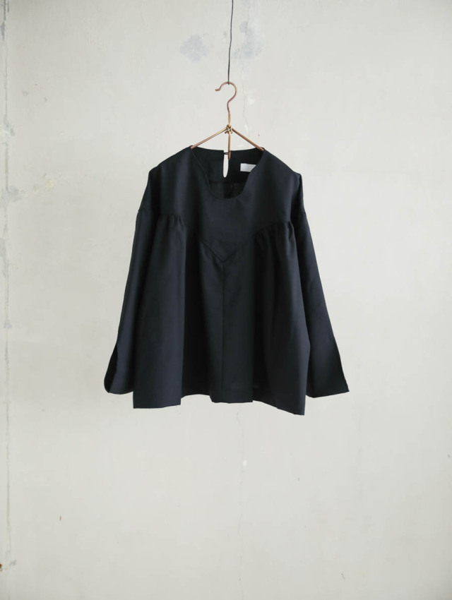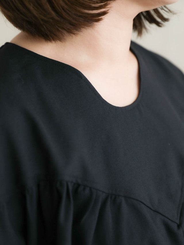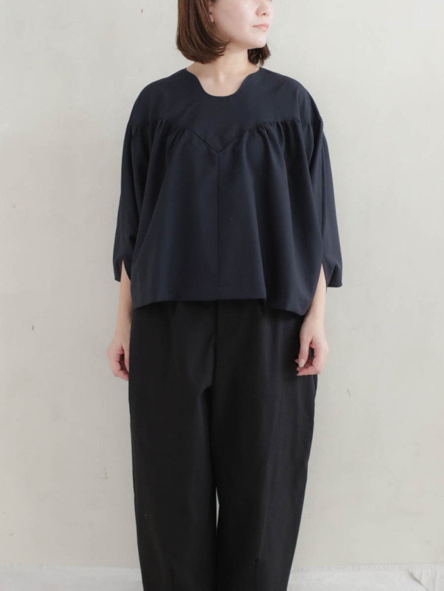 首元のラインが印象的で、カジュアルすぎない品の良いブラウスです。