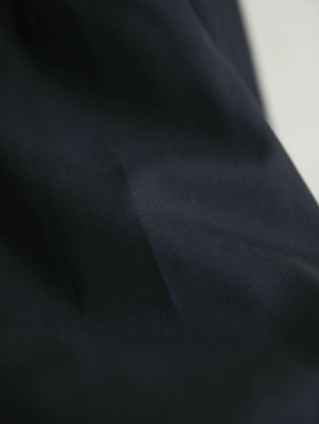 上品で高級感のある表情としなやかなハリ、シワになりにくく軽やかで、デイリーにご着用いただけます。サラサラと肌離れの良さや軽さがありつつも、ウールの温かみも感じていただけます。
