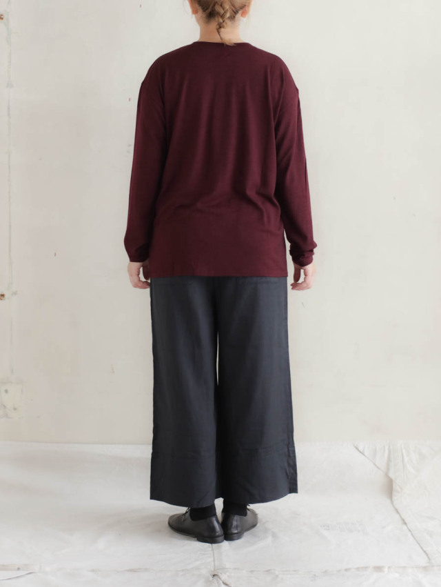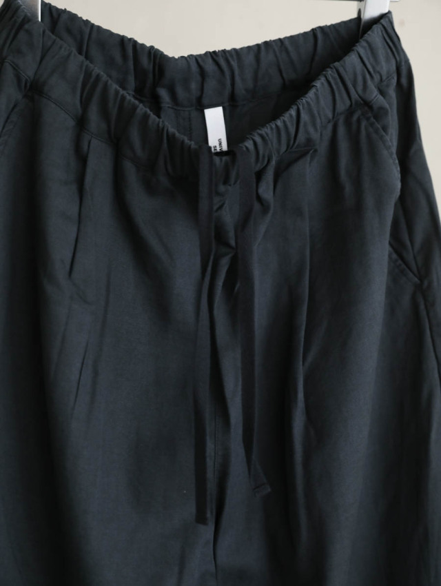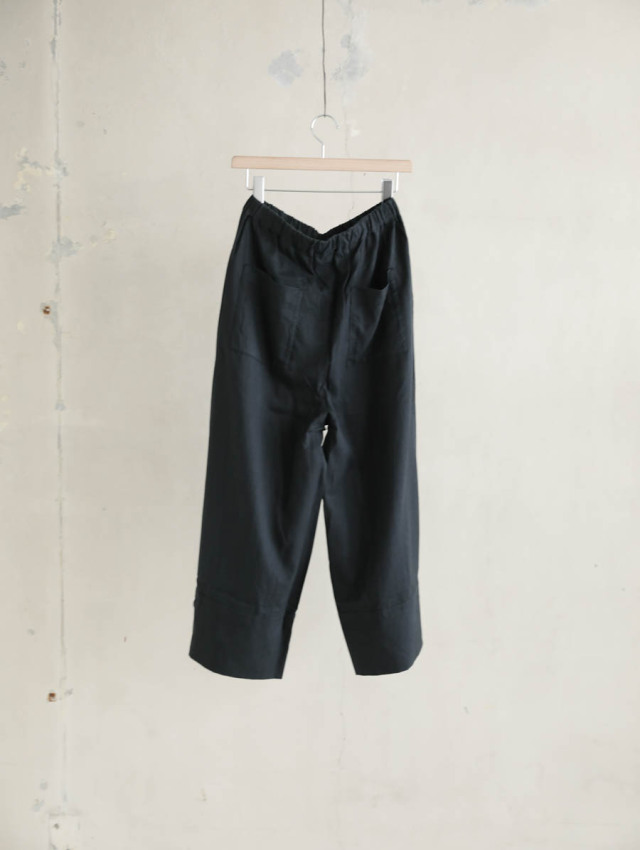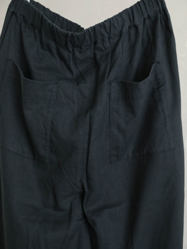 ウエストはゴムと紐のついたイージー仕様で楽な穿き心地。股上深めでゆったりとお過ごしいただけます。
