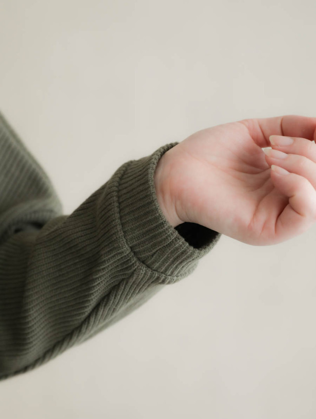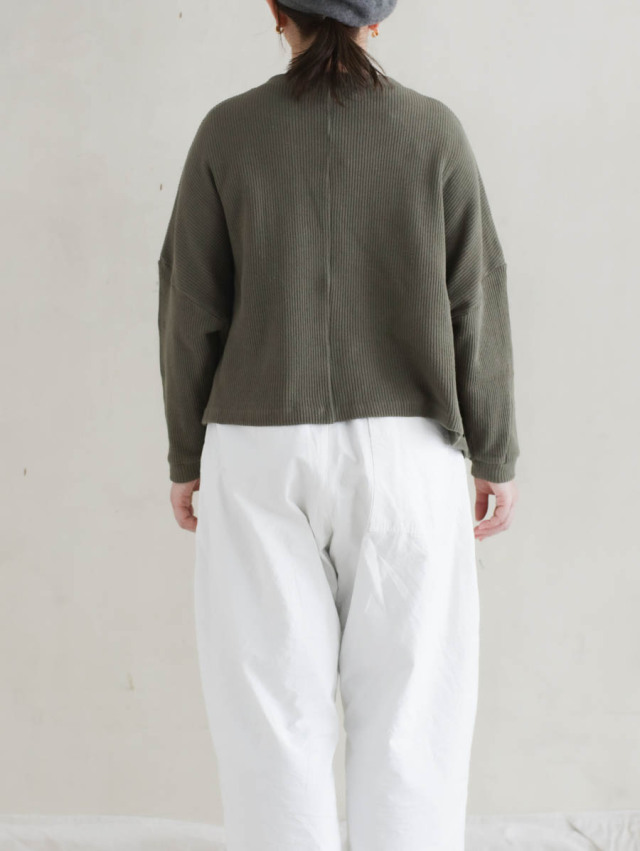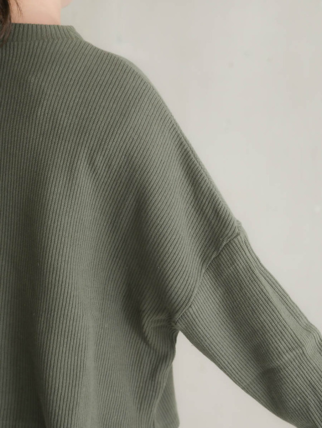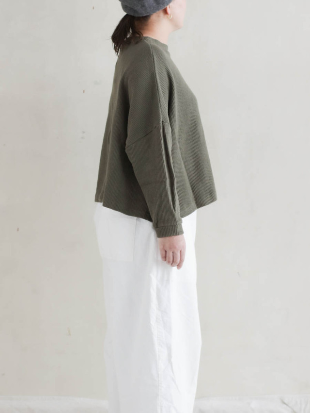 リブニットモックネックワイドプルオーバー カーキ