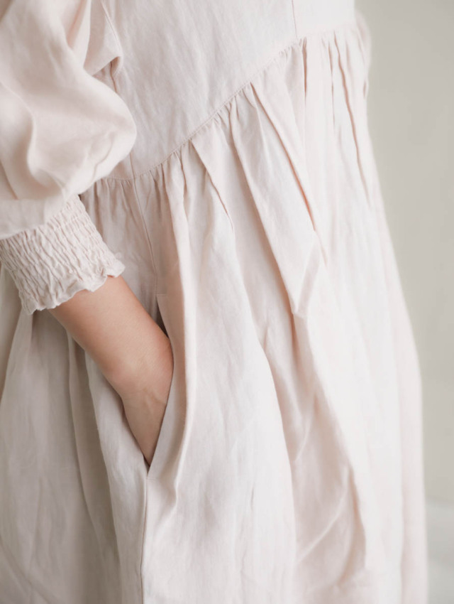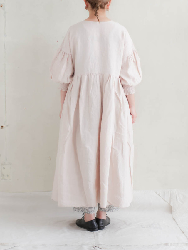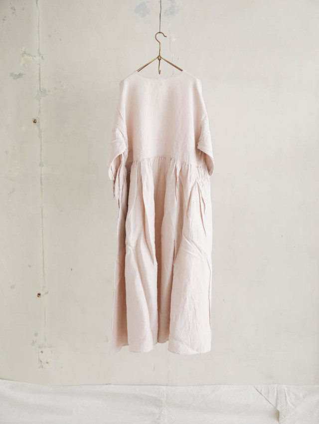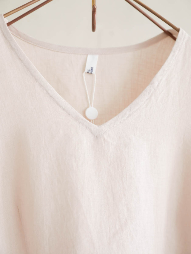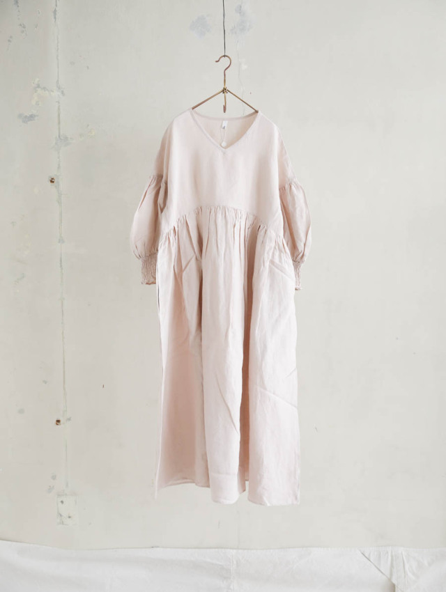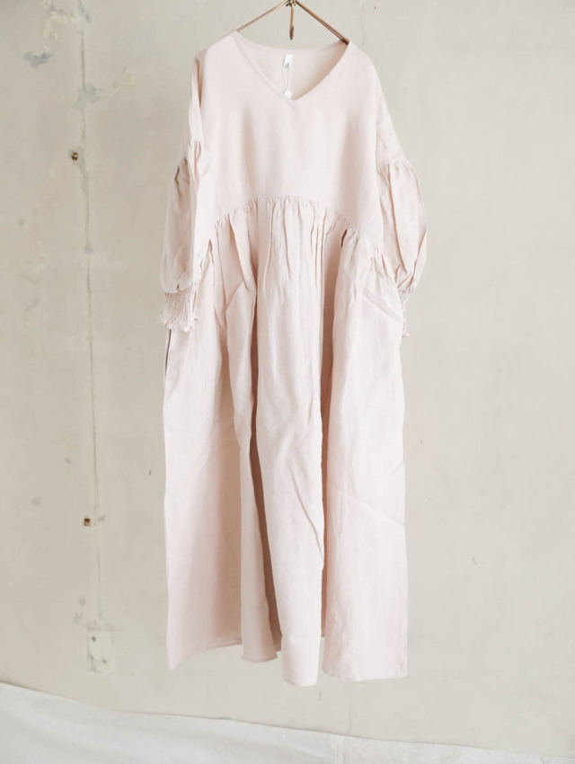 トリプルワッシャーリネンコットンVネックワンピース(スモーキーピンク)