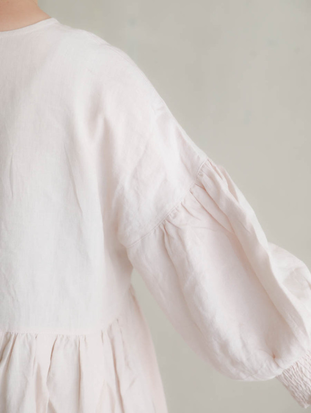 袖付けにギャザー、袖口にシャーリングを入れた、女性らしいシルエットのお袖。