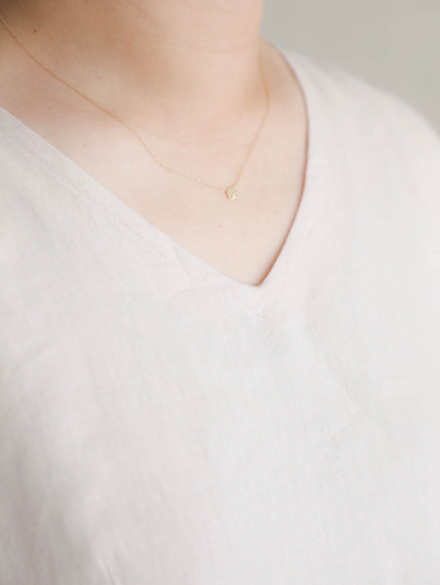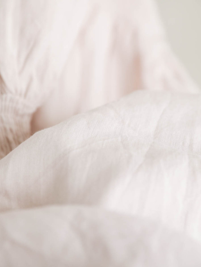 中厚のリネンはナチュラルで優しい風合い。肌触りも気持ちよく、快適にご着用いただけます。