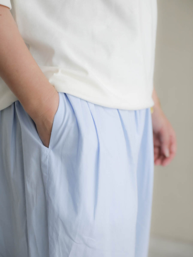 ナチュラルタイプライターコクーンイージーパンツ(アイスブルー)
