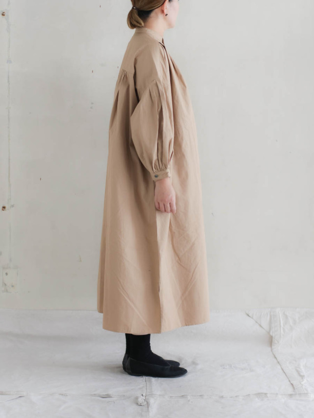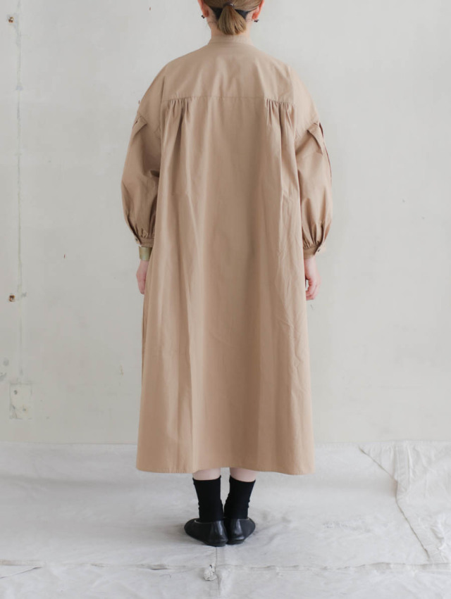 コンパクトウェザータックギャザーシャツワンピース(ベージュ)