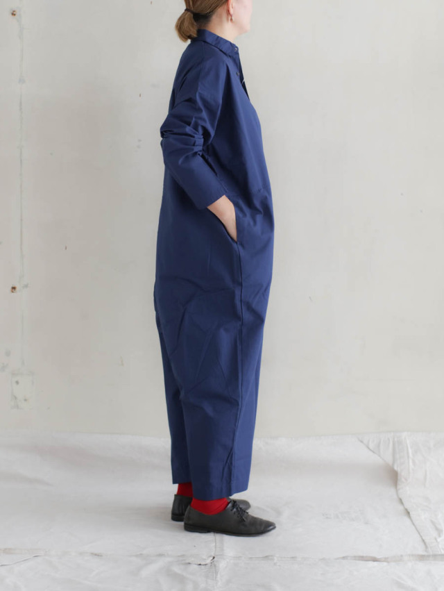 シンプルな形で着やすいオールインワン。1枚着るだけでスタイリングが整い、上からカーディガンやジャケット、ベストなど、重ね着も広がります。