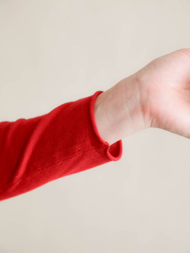 フィット感のあるすっきりとしたお袖でラフすぎず、バランス良く着ていただけます。