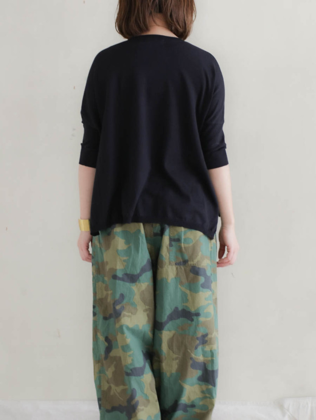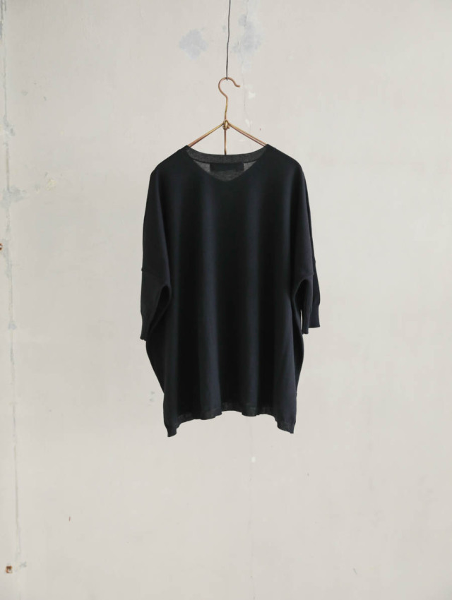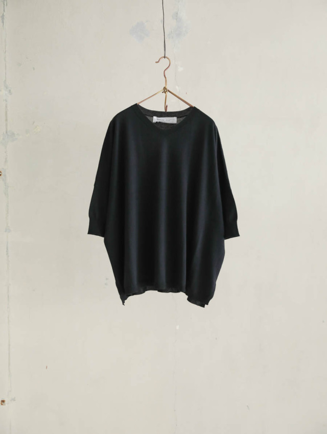 身幅の広い楽な着心地で、肩のラインに落ち感のあるゆったりと可愛らしいシルエットです。