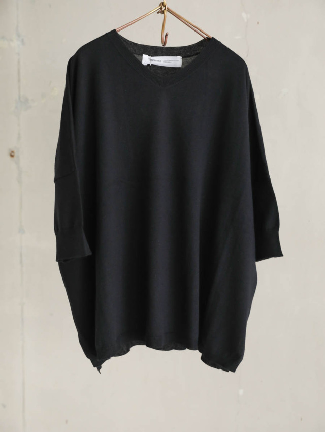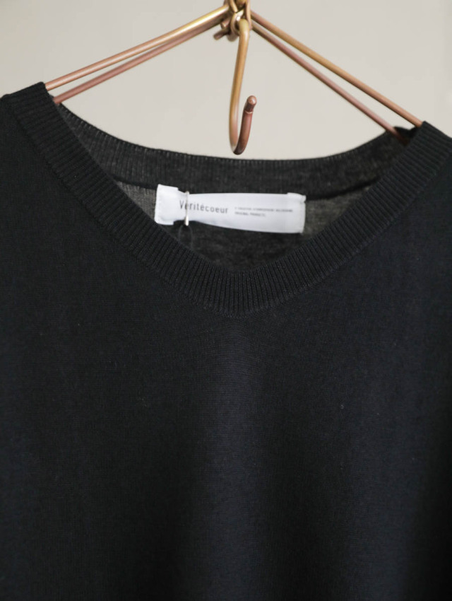 緩やかなVネックでが顔周りをすっきりと見せてくれる、ゆったりときれいに着れるニットです。