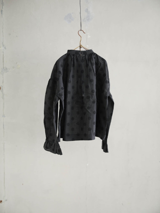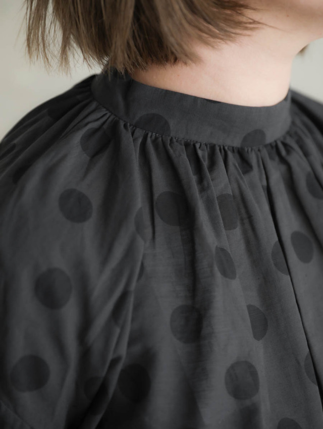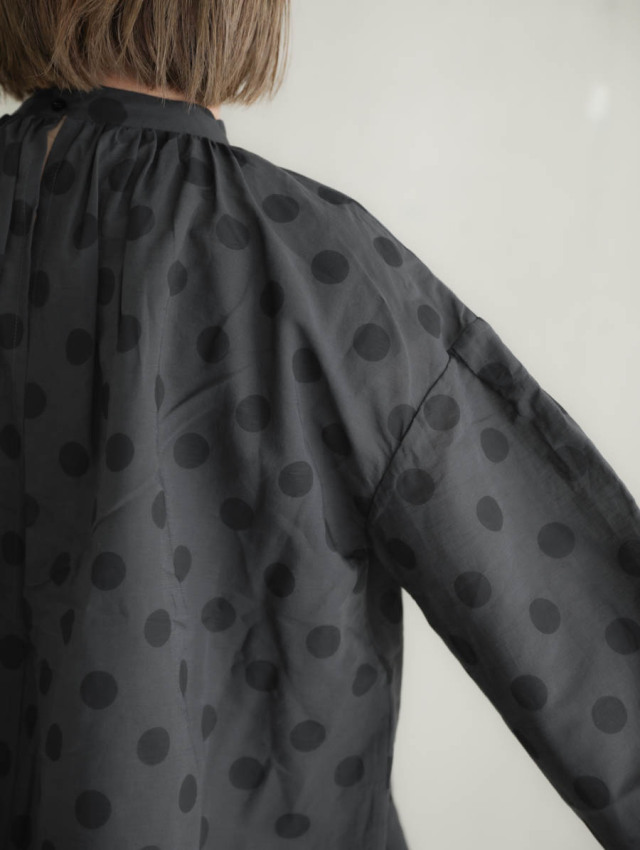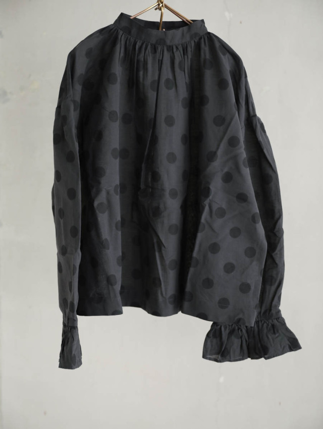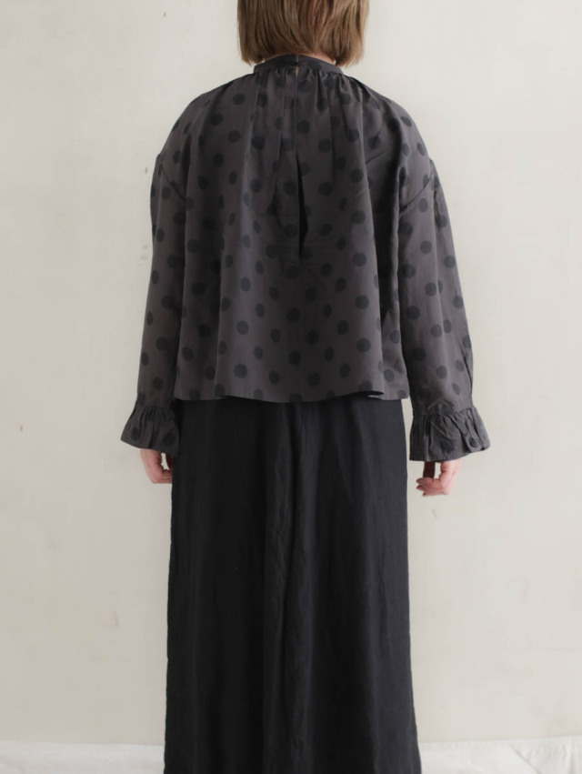 ギャザーブラウス SUMIGRAY × BLACK DOT