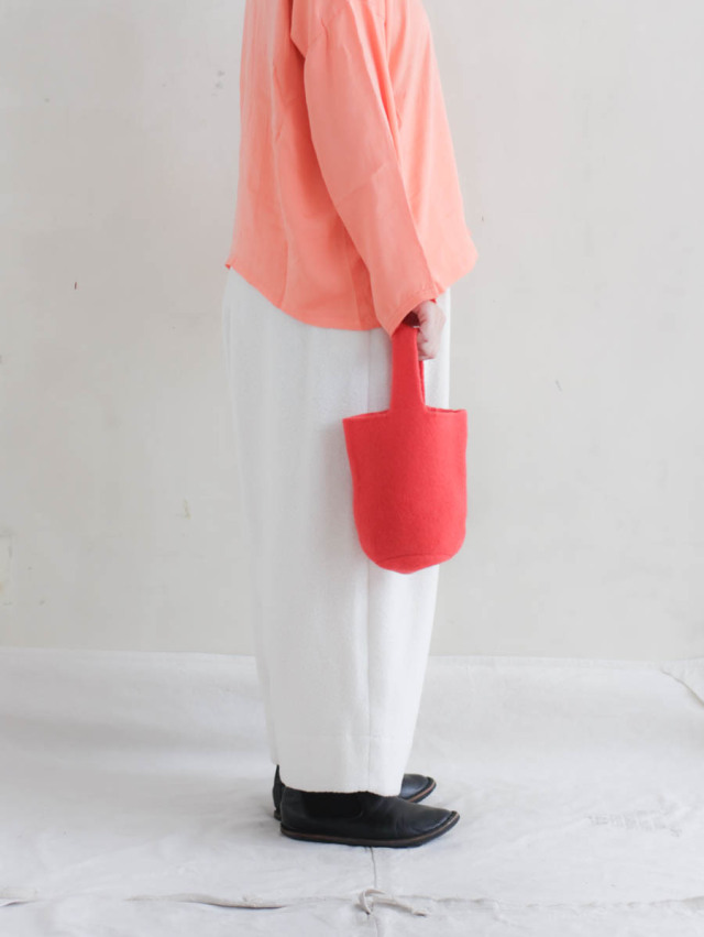 フェルトのようなウールで、ふわっと柔らかなミニバッグです。