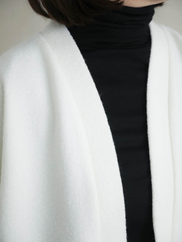 品良く暖かく、着心地は楽に。丈感のバランスも良く、着たまま室内でもお過ごしいただけます。