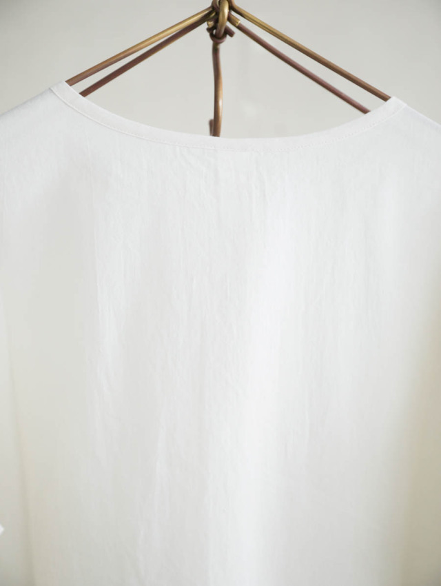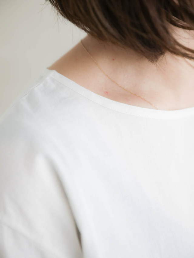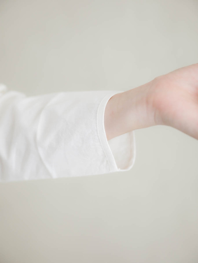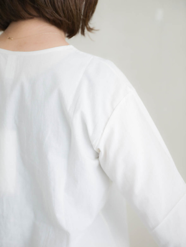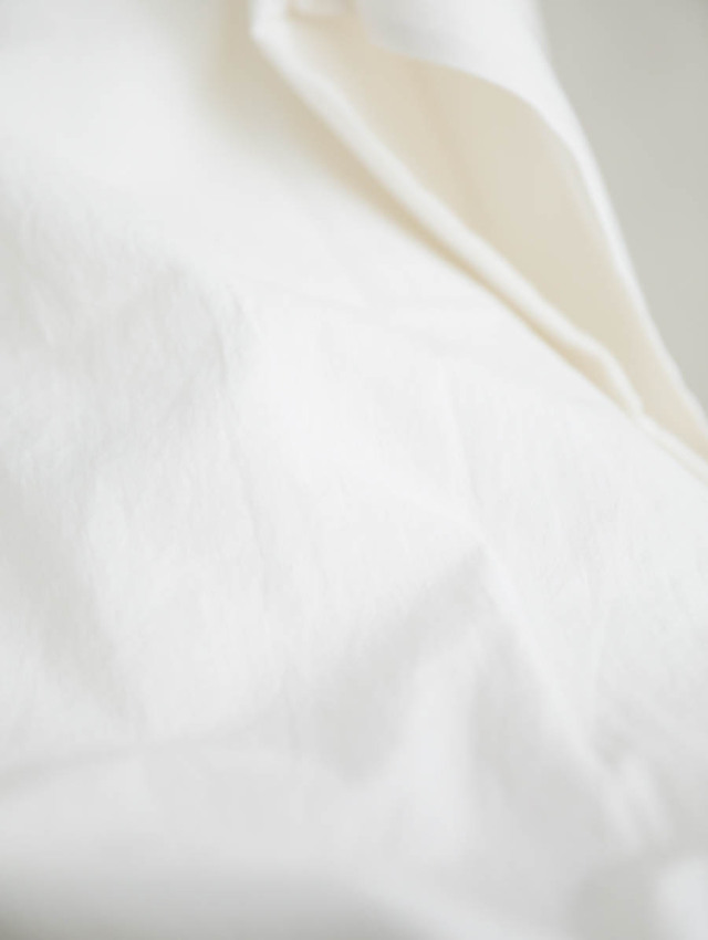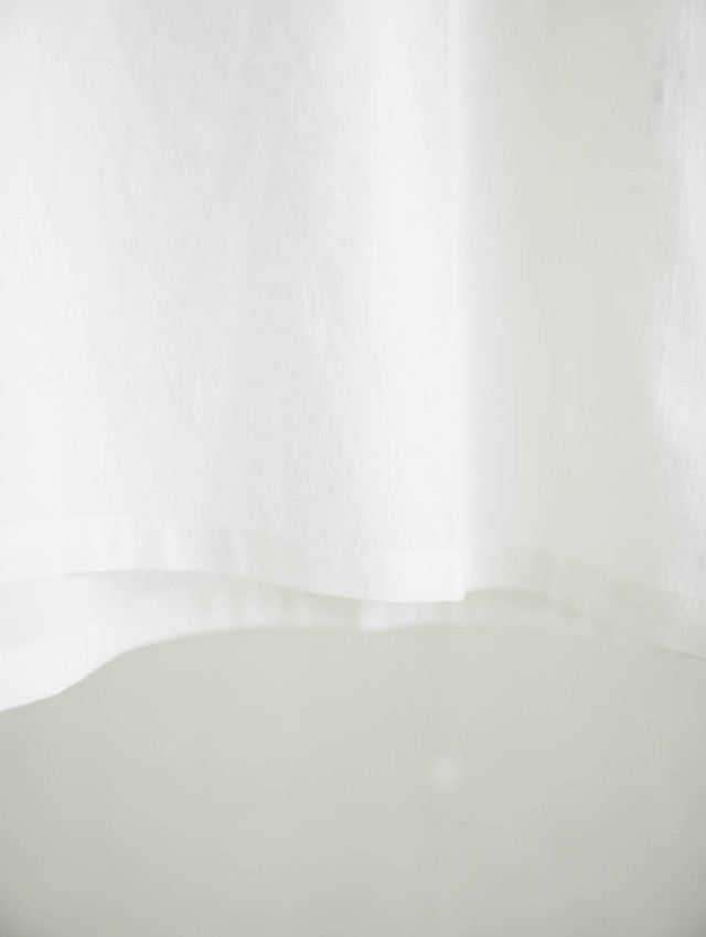 薄手でふっくらとしたコットン素材は、肌に柔らかく馴染む心地よい着心地です。ブロードのような優しい光沢があり、上品でありながらも自然体で過ごせる普段使いしやすい生地です。