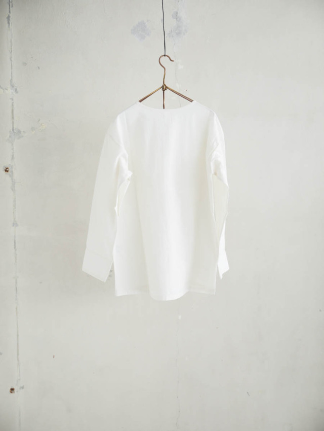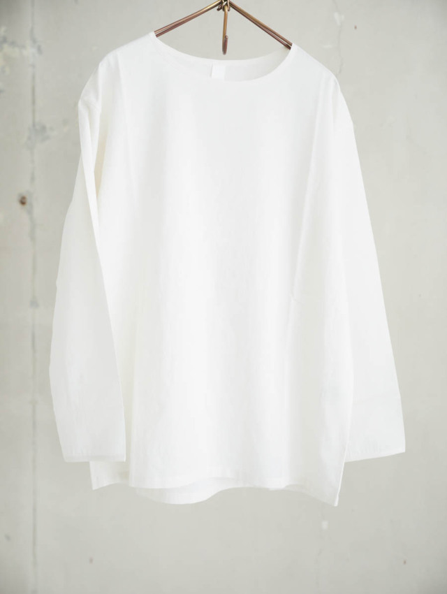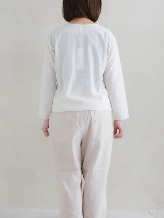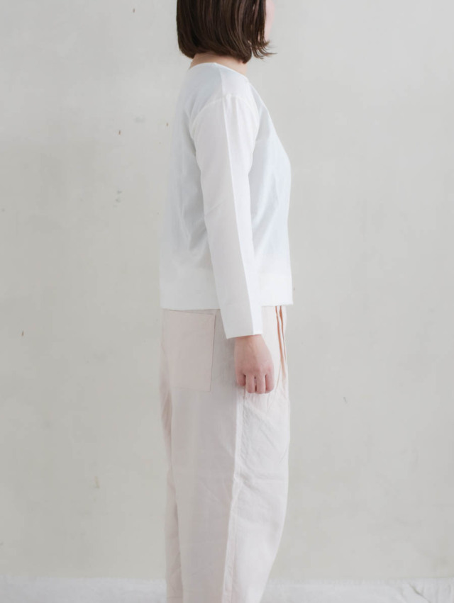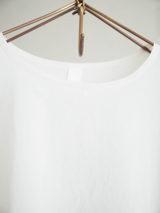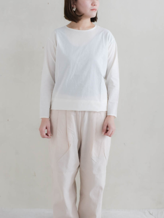 薄手でふっくらとしたコットン素材は、肌に柔らかく馴染む心地よい着心地です。ブロードのような優しい光沢があり、上品でありながらも自然体で過ごせる普段使いしやすい生地です。