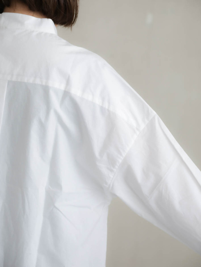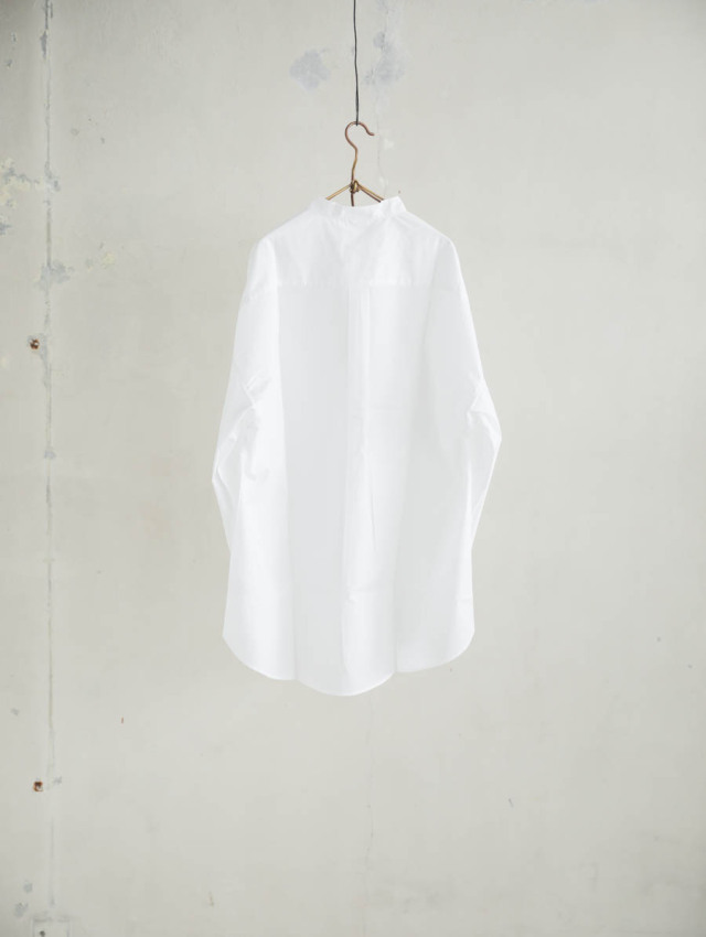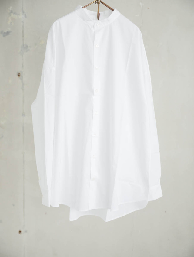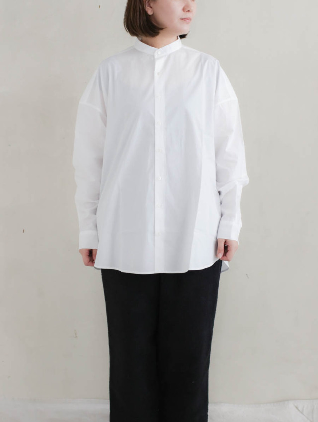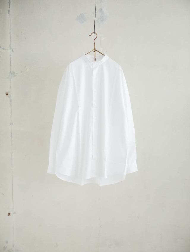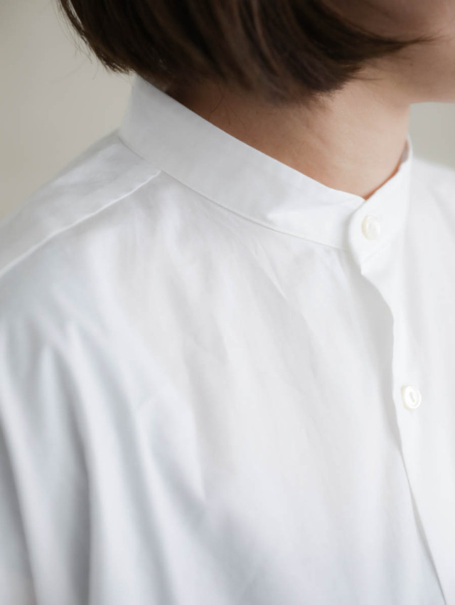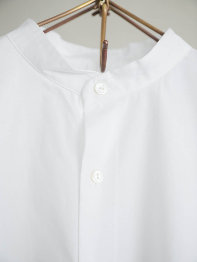 少しゆとりがありきれいなネックラインのバンドカラー。